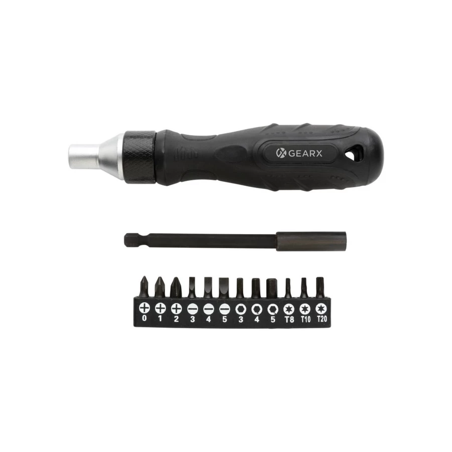 Zestaw narzędzi, w komplecie wkrętak i oraz 12 bitów, wbudowany silny magnes, wykonany ze stali stopowej S2, w pudełku podarunkowym, ślad węglowy produktu: 1,31 kg CO2