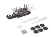 Zestaw narzędzi rowerowych LEROY to niezbędny komplet narzędzi dla każdego miłośnika jazdy na rowerze. Dzięki różnorodności narzędzi można wykonać niemal każdą niezbędną naprawę na trasie lub w domu. To kompaktowy zestaw, w którego skład wchodzi: komplet kluczy imbusowych, nasadki na śruby, śrubokręty, klucz uniwersalny, łyżki do opon oraz łatki do naprawiania dętek. Całość zapakowana w czarne etui.