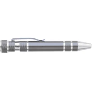 Zestaw narzędzi w pudełku, teleskopowa latarka 3 LED oraz śrubokręt w kształcie długopisu z 4 płaskimi i 4 krzyżakowymi końcówkami