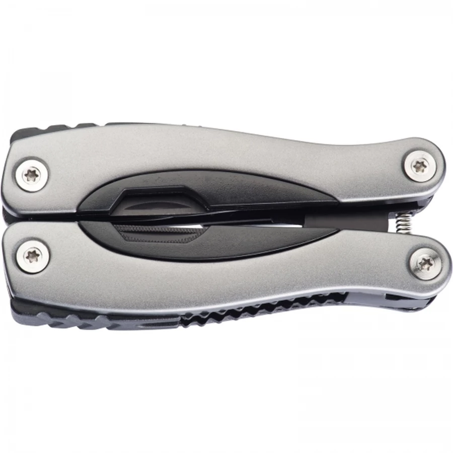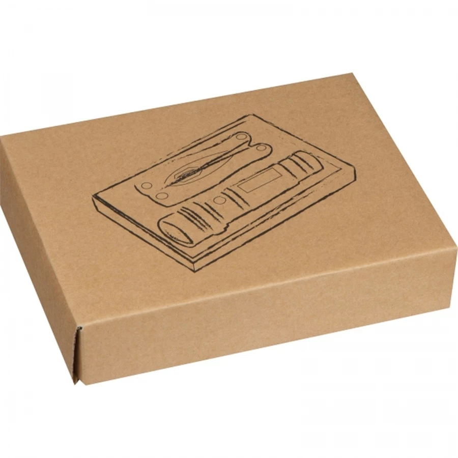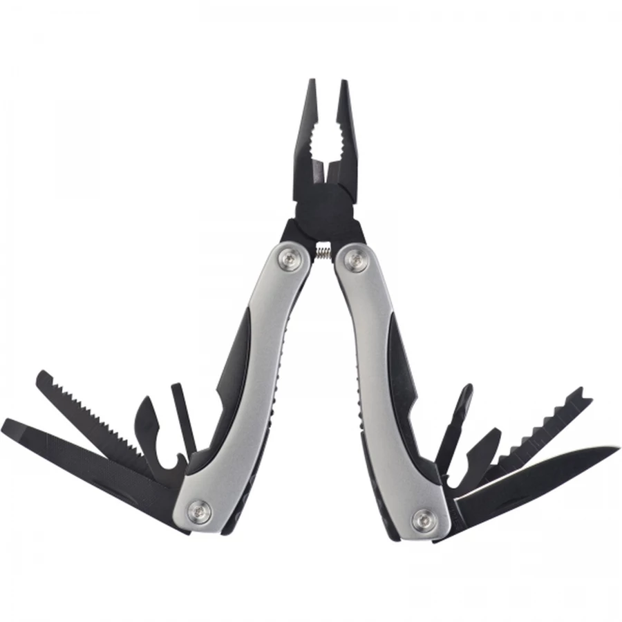 Zestaw składający się z metalowej latarki z 14 diodami LED oraz wielofunkcyjnego narzędzia (m. in. obcęgi, pilniki, śrubokręty, piłka, nóż, otwieracz). Latarka zawiera baterie.