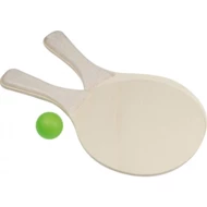 Zestaw plażowy do gry, zawiera dwie paletki wykonane z drewna z plastikowym uchwytem oraz piłeczkę. Paletki zapakowane w siatkę.
