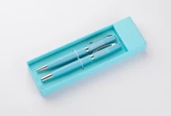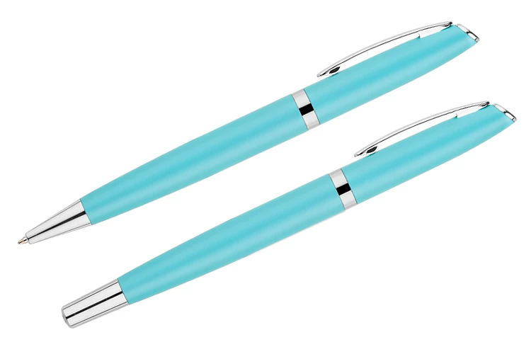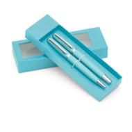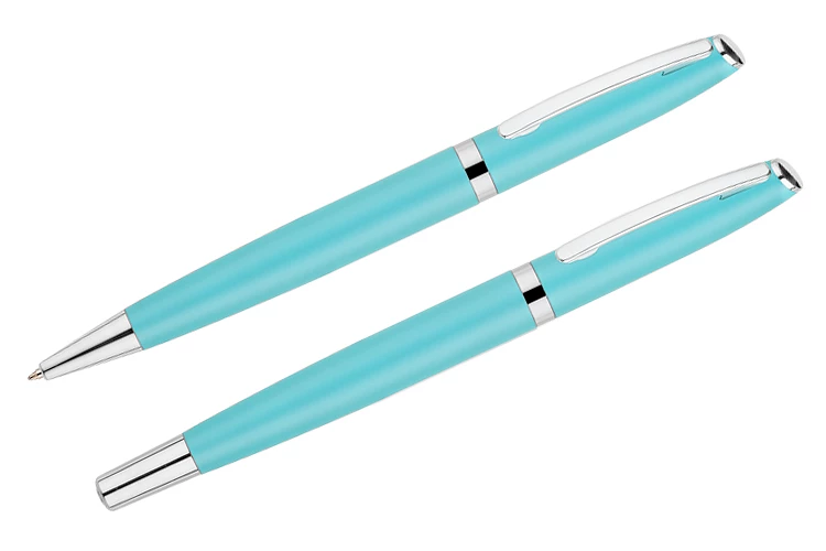 Zestaw piśmienniczy COLORADO składa się z długopisu oraz pióra kulkowego zapakowanych w kartonik dopasowany kolorystycznie do zestawu. Przybory piśmiennicze wykonane z metalu, etui z mocnej tektury wykończonej kolorowym papierem. Jego cechą charakterystyczną są soczyste, modne kolory. Długopis z mechanizmem typu twist. Wkład pióra i długopisu w kolorze niebieskim.