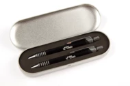 Komplet piśmienniczy DAKOTA zawiera w swoim zestawie długopis i ołówek automatyczny. Całość zapakowana w podręczne, metalowe etui. Logo grawerujemy zarówno na opakowaniu, jak i komplecie.