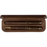 Zestaw piśmienniczy, długopis i pióro kulkowe, wkład w niebieskim kolorze wystarcza na ok. 1000 m pisania dla długopisu, ok. 400 m pisania dla pióra kulkowego, zapakowany pojedynczo w brązowy kartonik, produkt wykonany z metalu