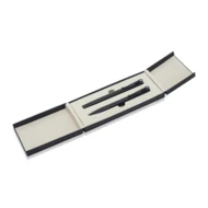 Zestaw piśmienniczy składający się z metalowego pióra kulkowego i długopisu. Wkład w kolorze niebieskim. Zapakowany w upominkowe opakowanie.