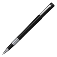 Zestaw składający się z metalowego długopisu i pióra kulkowego zapakowany w eleganckie etui o wypukłej fakturze. Oryginalny kształt klepsydry i połyskująca powierzchnia czynią z tego kompletu doskonały upominek reklamowy. Wkłady w kolorze niebieskim. Obrotowy mechanizm włączania.