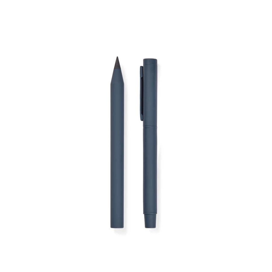 Ekskluzywny zestaw piśmienny, pióro kulkowe oraz długopis, niebieski wkład, wykonane z materiału z recyklingu, produkt zawiera 52% aluminium z recyklingu oraz 10% stali nierdzewnej z recyklingu