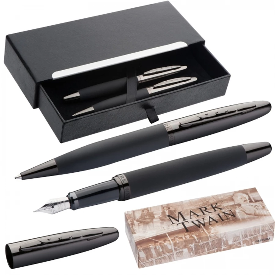 Zestaw piśmienny długopis i pióro wieczne Mark Twain - czarny - (NMC-13392-03)
