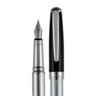 Klasyczny Zestaw piśmienniczy składający się z pióra kulkowego i pióra wiecznego. Czarne, lakierowane nasadki idealnie nadają się do grawerowania. Obydwa artykuły posiadają wkłady w standardowych rozmiarach, piszące na niebiesko. Całość zapakowana w eleganckie pudełko prezentowe z certyfikatem autentyczności Pierre Cardin.