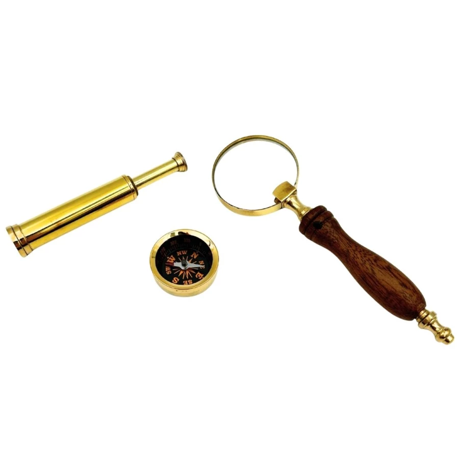 Zestaw Podróżnika – Luneta + Kompas + Lupa w Drewnianym Pudełku – NC2677A