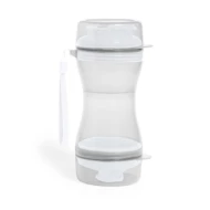 Zestaw podróżny dla psa, przegroda 280 ml na wodę z dozownikiem, przegroda 330 ml na jedzenie dla psa, pasek na rękę, 2 wieczka mogące służyć jako miski dla psa w komplecie