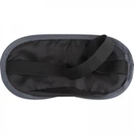 Zestaw z poliestru zawiera nadmuchiwaną poduszkę na szyję, zatyczki do uszu i opaskę na oczy oraz woreczek.