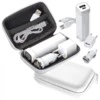 Zestaw podróżny EXETER składa się z power banka (2200 mAh), wtyczki zasilającej, kabla USB, wtyczki samochodowej USB. Całość zapakowana w etui ze skóry syntetycznej w kolorze białym.