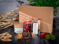 W przypadku braku dostępności produktów z oferty zastrzegamy sobie prawo do zamiany produktów na równowartościowe; zawsze po wcześniejszej akceptacji przez Klienta. Zestaw prezentowy Chwila Relaksu to elegancki i smakowity upominek, idealny na chwilę przyjemności. Zawiera mleczną lub ciemną czekoladkę z żurawiną (20 g), miodowy batonik Kłos z daktylem (45 g), aromatyczną herbatę jabłko-cynamon (50 g) oraz konfiturę extra z czarnej porzeczki (200 g). Całość zapakowana jest w eleganckie opakowanie z wypełnieniem i rafią. To doskonały prezent, który zachwyci smakiem i stylem!