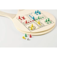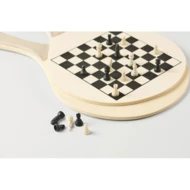 Zestaw plażowy z 2 rakietkami ze sklejki z planszami do gry w szachy i ludo. Zawiera 1 piłkę TPR, kości i pionki. Zapakowane w siatkową torbę z RPET zapinaną na zamek błyskawiczny.