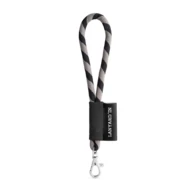Personalizowana smycz Lanyards, krótka smycz sznurkowa z poliamidu, w 17 standardowych kolorach dostępnych do personalizacji. Zawiera następujące akcesoria i dodatki: czarna gumka, etykieta sublimacyjna 43 x 15 mm i mały karabińczyk 9 mm. ø7 x 150 mm
