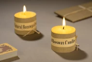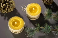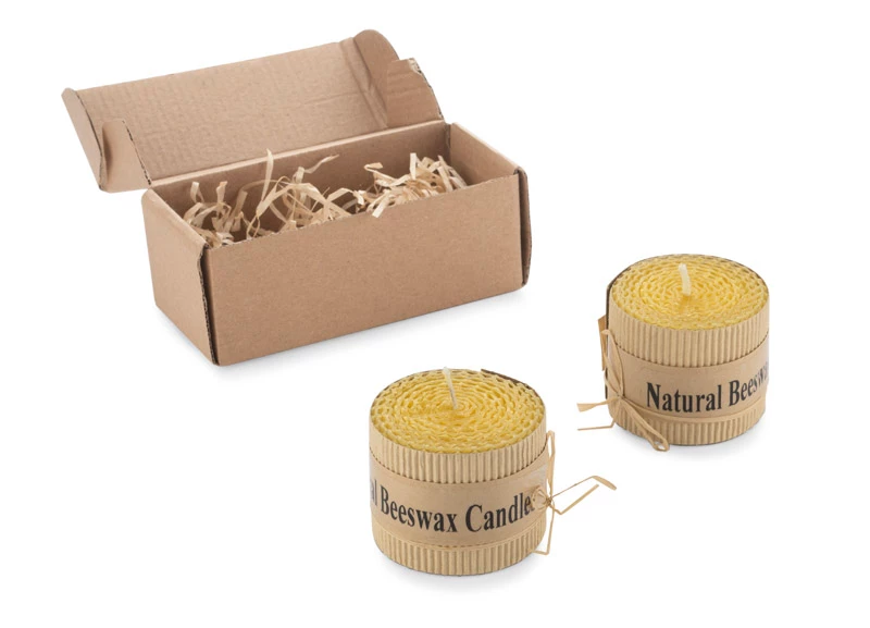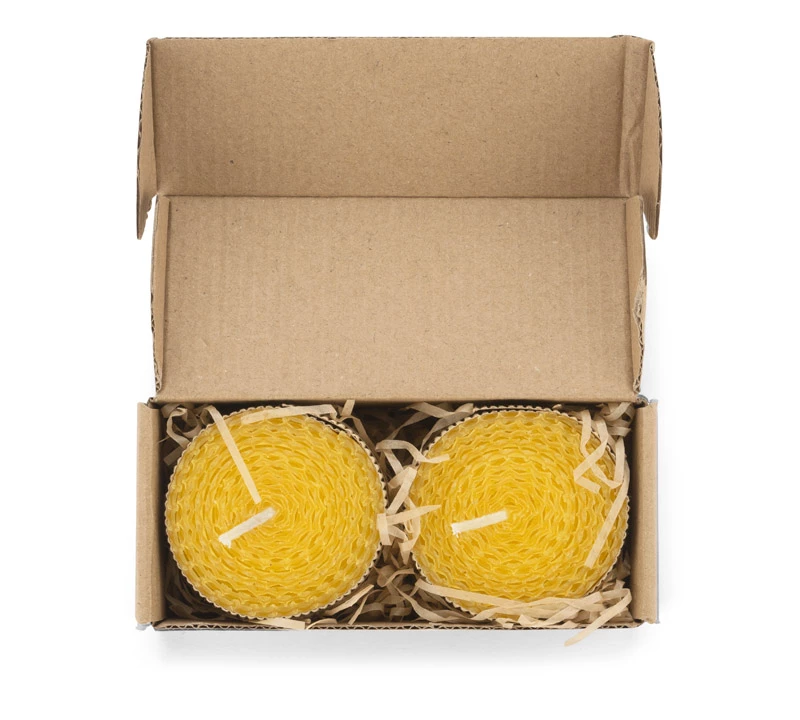Zestaw 2 świec wykonanych z naturalnego wosku pszczelego to idealny upominek dla osób ceniących romantyczny nastrój w wersji eko. Świece spakowane w kartonik z tektury wypełniony ozdobnym siankiem ekologicznym. Każda świeca ozdobina kokardą z rafii.