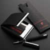 Elegancki zestaw upominkowy składający się z pióra kulkowego i wizytownika. Pióro kulkowe wyposażone zostało w niebieski wkład do wielkrotnego napełniania z końcówką 0,5 mm i funkcję touch pen. Wizytownik wykonany ze stali nierdzewnej z przyjemną w dotyku powierzchnią. Całość zapakowana w eleganckie pudełko prezentowe z certyfikatem autentyczności Pierre Cardin.