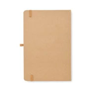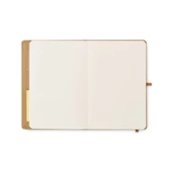 Notatnik A5 z kartonową okładką z 80 kartkami papieru z recyklingu (160 stron), 25 karteczkami samoprzylepnymi i znacznikami. Gumka zamykająca i pętelka na długopis.