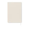 Zeszyt A5 z twardą okładką i 160 stronami w linie (80 kartek 80 g/m²) wykonany w 70% z kartonów po mleku i w 30% z papieru z recyklingu. Elastyczny pasek zamykający, zakładka z tasiemki.