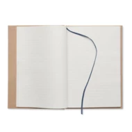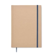 Notatnik A5 w twardej okładce z kartonu z recyklingu. 200 stron w linie z papieru makulaturowego (100 kartek 80 g/m²). Dopasowana gumka zamykająca i tasiemka do oznaczania stron. Made in EU.
