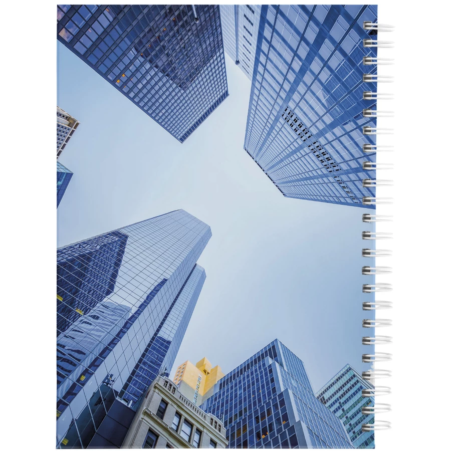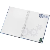 Zawiera 80 arkuszy (80 g/m2) czystych kartek oraz czarną lub białą spiralę. Dostępny w 3 formatach: A4, A5 i A6. Pełne zdobienie w kolorze możliwe na okładce i każdym arkuszu, na stronie przedniej i tylnej.