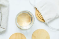 Zestaw 6 okrągłych podstawek bambusowych w bawełnianym etui ze sznurkiem.