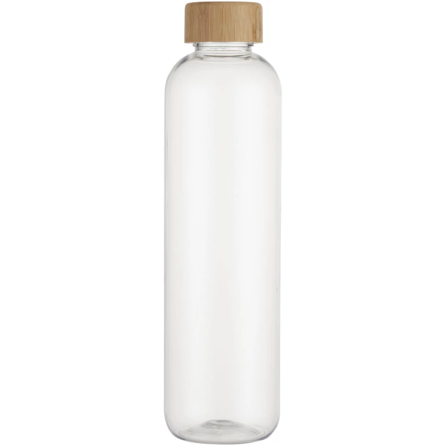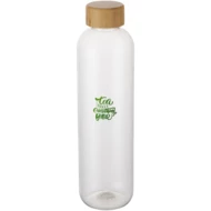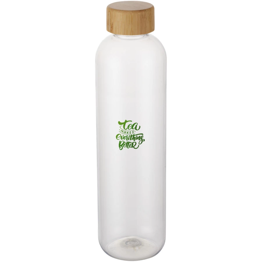 Butelka na wodę wielokrotnego użytku wykonana z tworzyw sztucznych pochodzących, ze stylową bambusową pokrywką. Jednościenna butelka niezawierająca BPA, przetestowana i zatwierdzona zgodnie z niemieckimi przepisami dotyczącymi bezpieczeństwa żywności (LFGB). Przetestowana i zatwierdzona pod kątem zawartości ftalanów zgodnie z przepisami REACH. Bambus pochodzi ze zrównoważonych, ekologicznie i społecznie odpowiedzialnych źródeł. Pojemność 950 ml. Zalecane mycie ręczne. Zapakowana w pudełko upominkowe wykonane z kartonu z recyklingu.