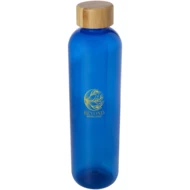 Butelka na wodę wielokrotnego użytku wykonana z tworzyw sztucznych pochodzących, ze stylową bambusową pokrywką. Jednościenna butelka niezawierająca BPA, przetestowana i zatwierdzona zgodnie z niemieckimi przepisami dotyczącymi bezpieczeństwa żywności (LFGB). Przetestowana i zatwierdzona pod kątem zawartości ftalanów zgodnie z przepisami REACH. Bambus pochodzi ze zrównoważonych, ekologicznie i społecznie odpowiedzialnych źródeł. Pojemność 950 ml. Zalecane mycie ręczne. Zapakowana w pudełko upominkowe wykonane z kartonu z recyklingu.