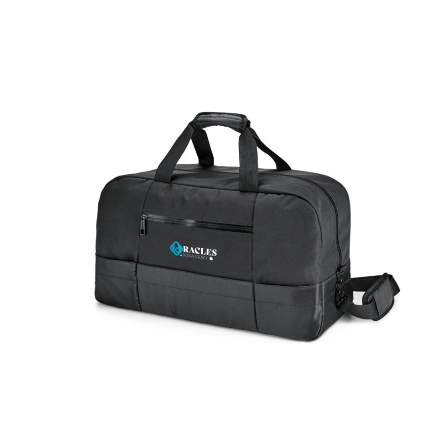 Torba sportowa z żakardu 840D i executive 300D z wyłożonym wnętrzem. Główna komora i przednia kieszeń z zamkiem błyskawicznym. Torba posiada odpinany i regulowany pasek na ramię z taśmy z wyściełanym wzmocnieniem. Pojemność do 30 L. 520 x 300 x 220 mm