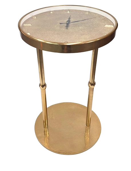 Złoty Stolik Metalowy Glamour z Zegarem – Piękna dekoracja – 1056A