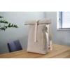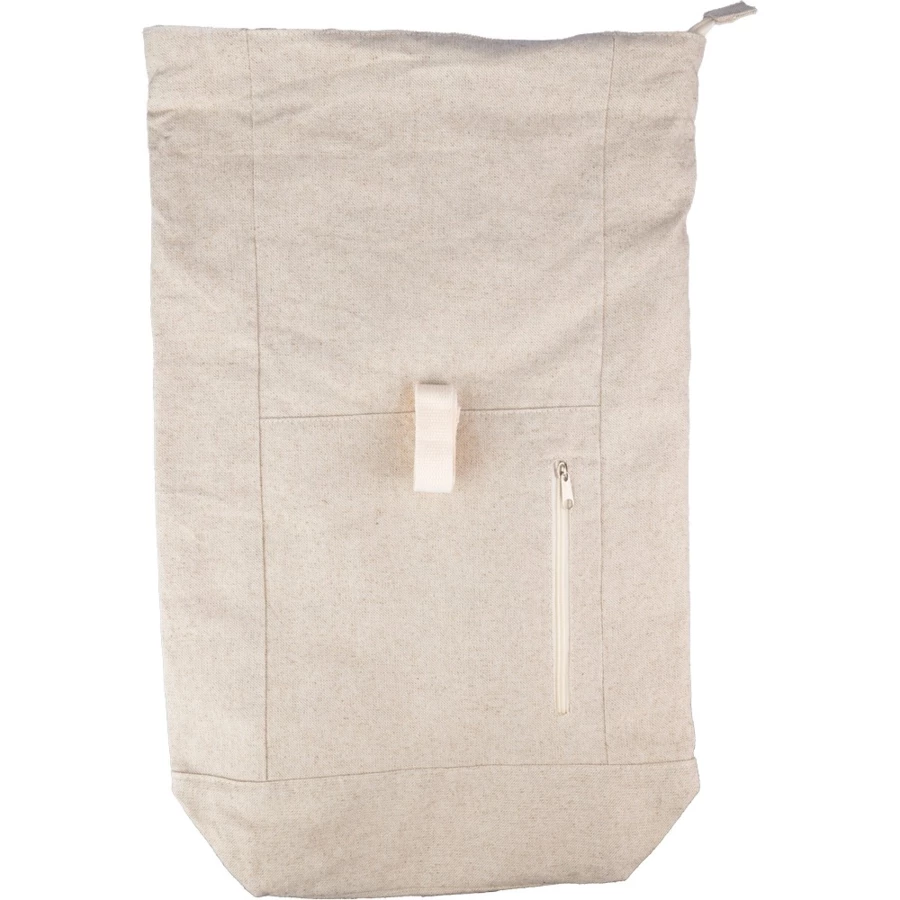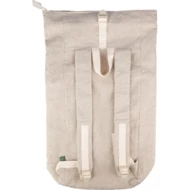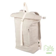 Zwijany plecak, z bawełnianą podszewką, przednia kieszeń zamykana na zamek, rozwijalna główna kieszeń, która umożliwia zwiększanie pojemności plecaka, ikona konopi na produkcie, produkt wykonany z konopi i PEVA