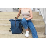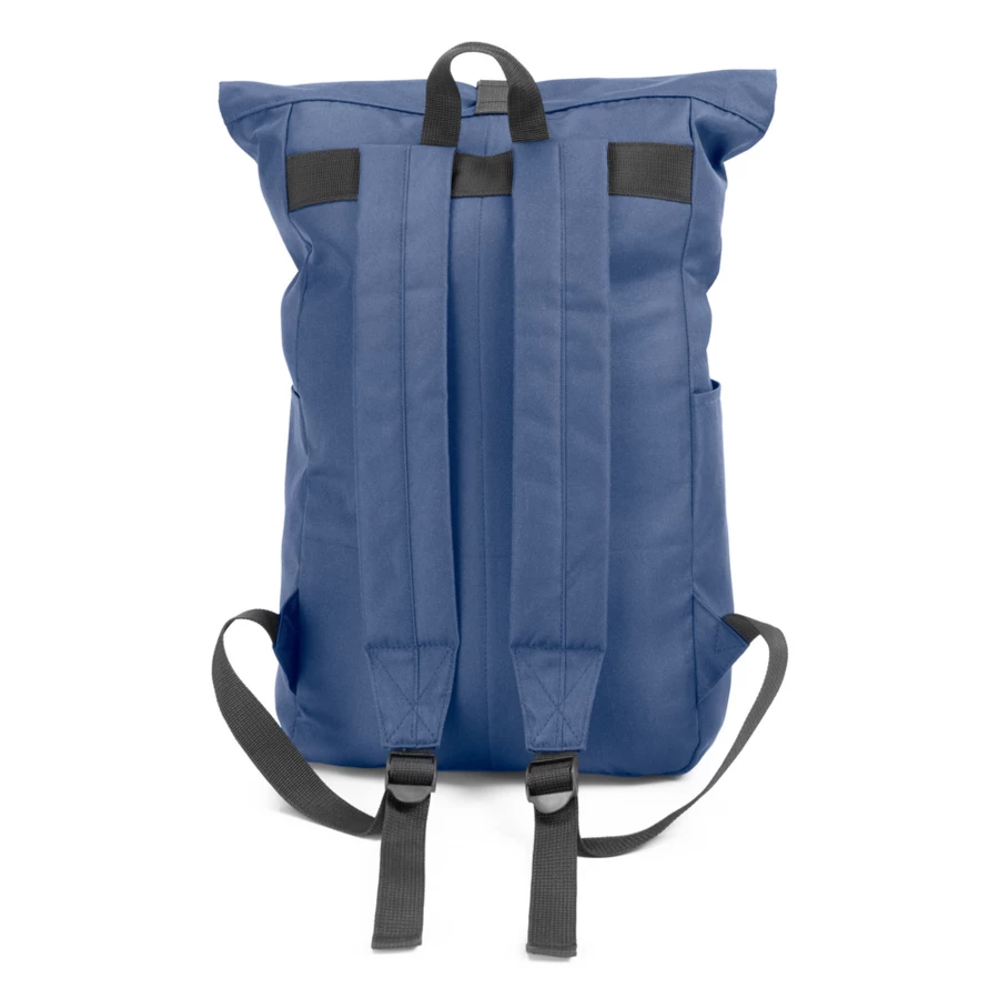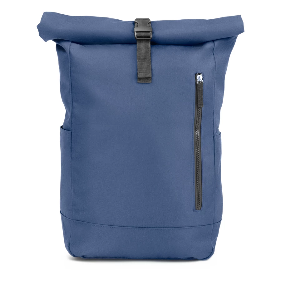 Plecak z przednią kieszenią i główną przegrodą na zamek błyskawiczny, wykonany z RPET, zgodny z certyfikatem GRS (Global RecycIed Standard), 2 kieszenie boczne, rozwijalna główna kieszeń zamykana na klamrę, która umożliwia zwiększanie pojemności plecaka oraz lepiej chroni przed czynnikami atmosferycznymi po zwinięciu, regulowane paski na ramię