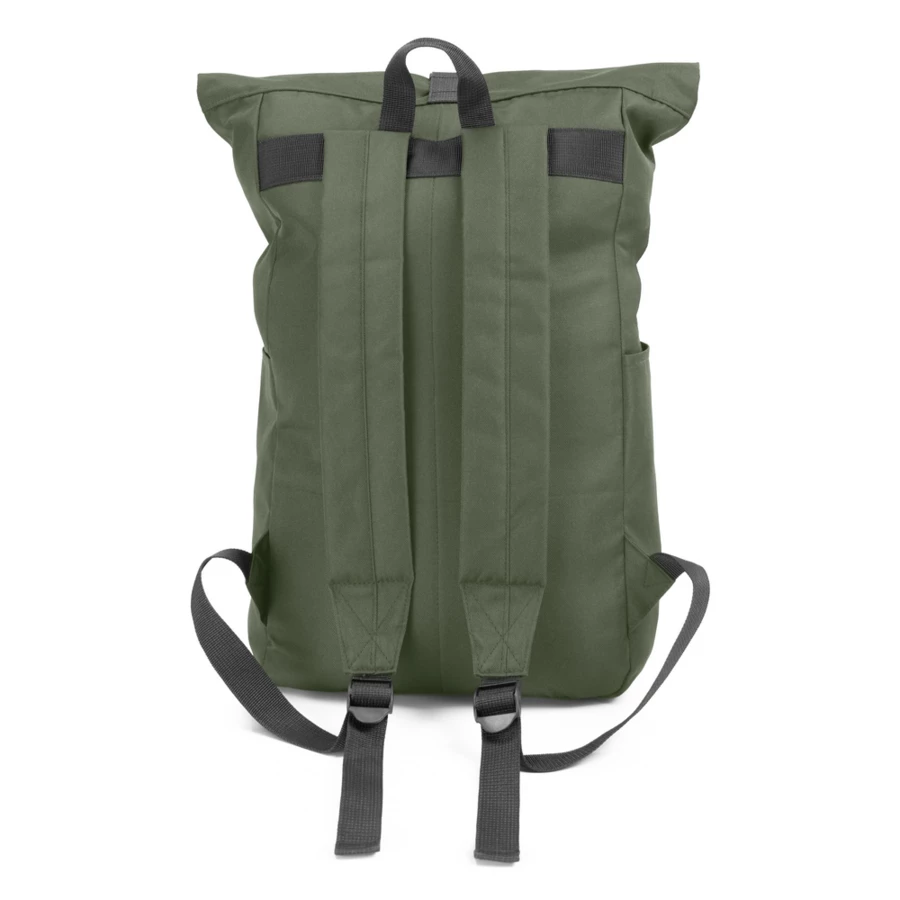 Plecak z przednią kieszenią i główną przegrodą na zamek błyskawiczny, wykonany z RPET, zgodny z certyfikatem GRS (Global RecycIed Standard), 2 kieszenie boczne, rozwijalna główna kieszeń zamykana na klamrę, która umożliwia zwiększanie pojemności plecaka oraz lepiej chroni przed czynnikami atmosferycznymi po zwinięciu, regulowane paski na ramię